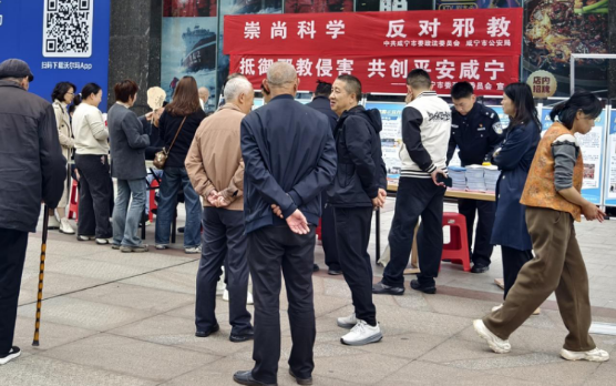 为深入推进反邪教警示教育工作,切实增强广大群众自觉抵御邪教侵蚀的思想意识和行动能力,着力营造崇尚科学、反对邪教、共建和谐的良好社会氛围,4月24日,市委政法委联合市公安局、市司法局、咸安区委政法委,在温泉沃尔玛广场精心举办反邪教警示宣传教育活动,以接地气、入人心的方式向群众普及反邪教知识。