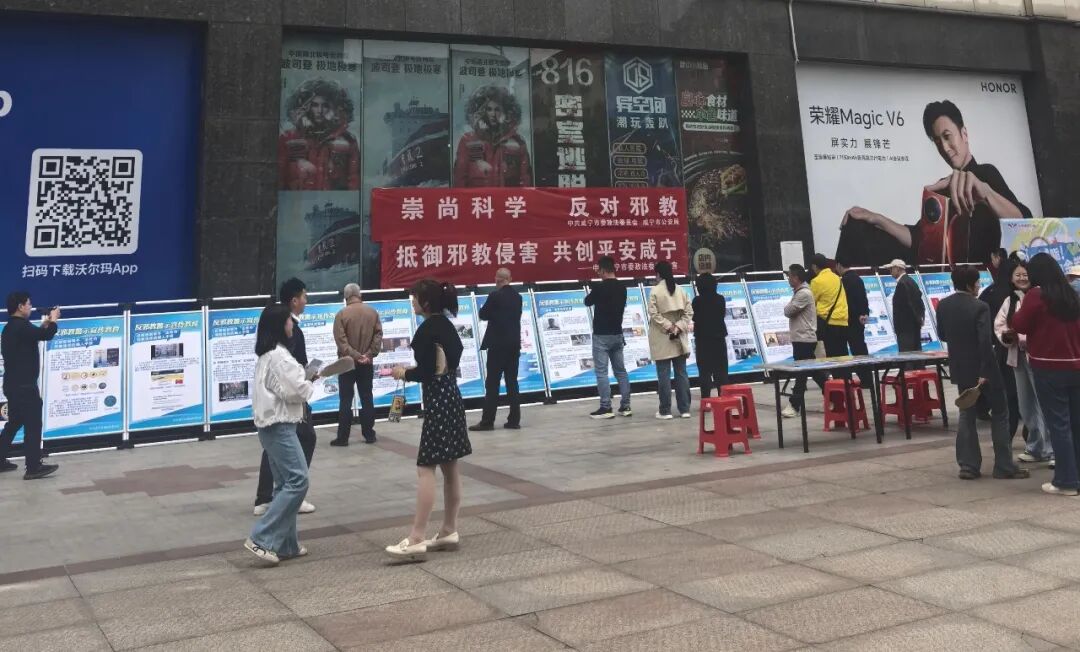 活动现场,一排排反邪教警示教育展板整齐陈列、内容详实鲜活,通过真实案例、图文解读,直观揭露各类邪教的骗人套路、社会危害与渗透手段,不少过往市民驻足认真观看、仔细品读,深刻认清邪教危害、提升辨别防范能力。