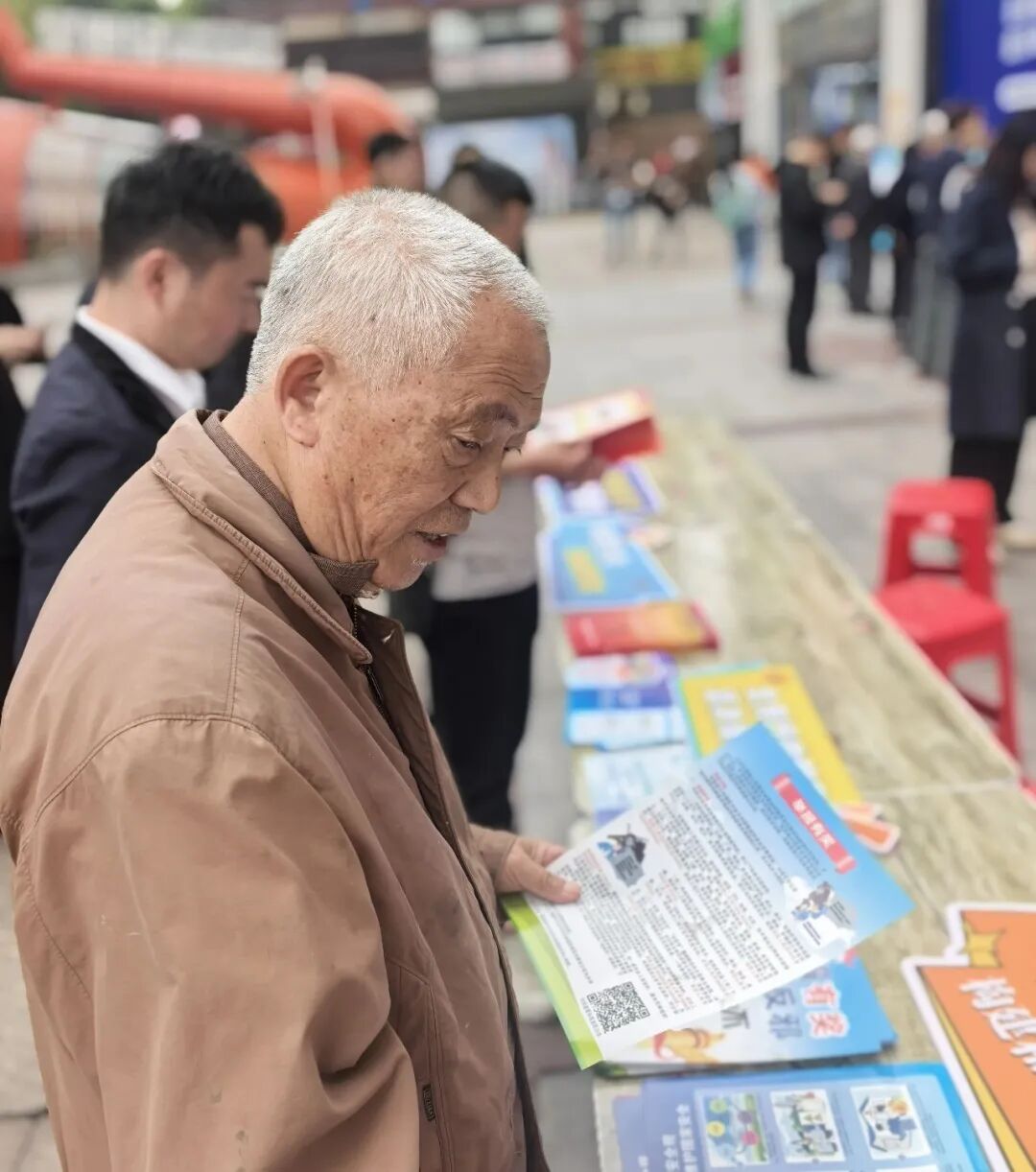 司法干警、普法志愿者们在便民咨询台前,向往来逛街的市民、沿街商铺经营者,主动发放普法宣传折页、主题手册与法治宣传礼品,热情向大家普及反邪防邪、科学健康生活理念,同步讲解民法典、消费者权益保护法等与日常生产生活息息相关的法律条文。