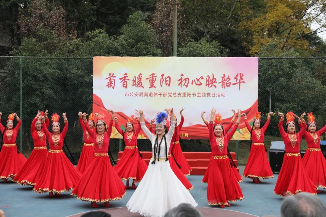 在奔放热烈的新疆舞演出中,活动拉开帷幕。老同志们用曼妙的舞姿,瞬间点燃了全场热情。