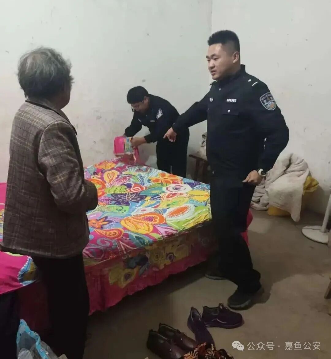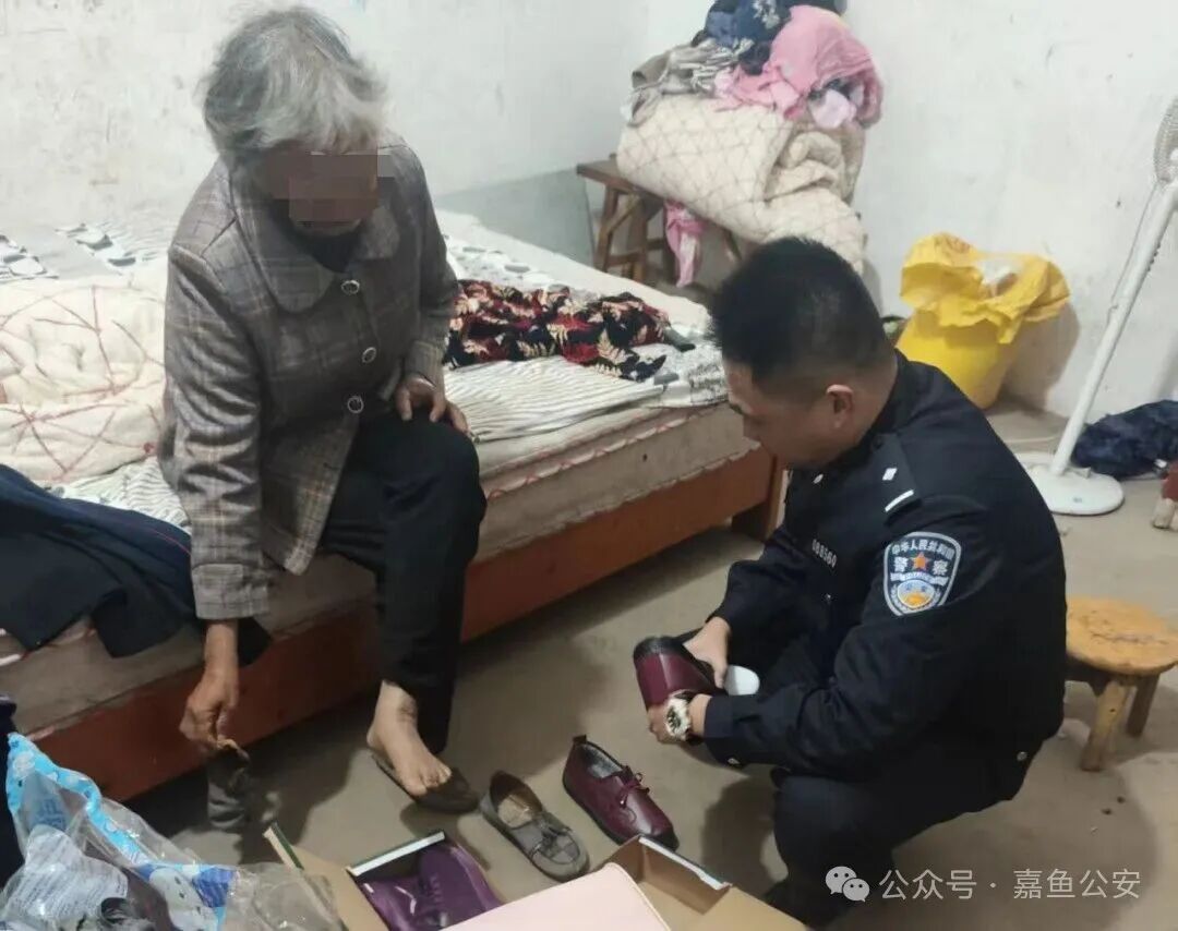 10月27日17点5时,陆溪派出所民警在辖区尹老太太家中调查案件时,与老人沟通的间隙,目光被床上单薄的棉絮和老人脚上的旧鞋吸引——棉絮单薄,鞋子明显不合脚,几番拉扯都拉不起鞋帮。“这么冷的天,您就没有双合适的鞋子吗?”一句关切的询问背后,是民警对独居老人生活细节的敏锐留意。当听到老人轻声坦言没有合脚的鞋时,他们仔细询问并默默记下了老人穿39码鞋的尺码,连同家中缺少厚棉被的现状一起,这份牵挂成了办案之外的心头事。