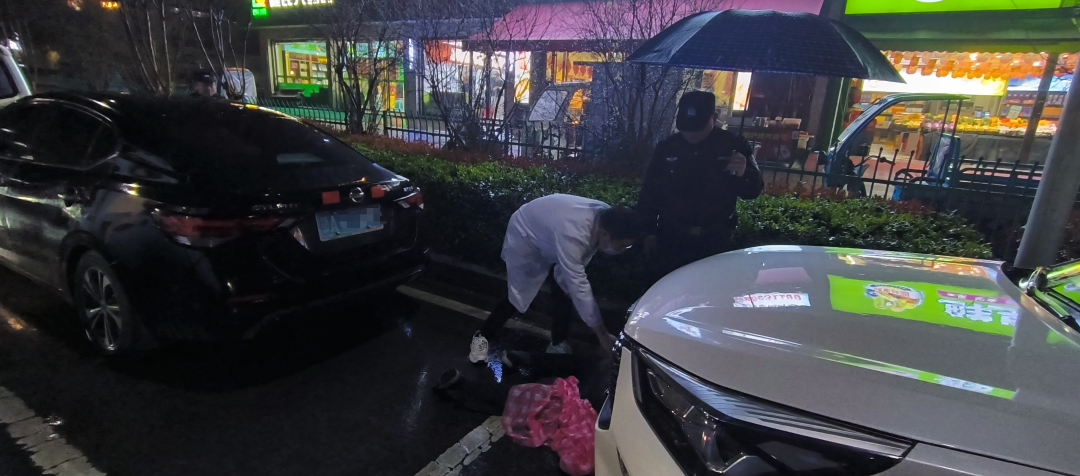 警情就是命令!民警当即以吴爹爹的居住地为起点,同步启动视频追踪与路面车辆巡查工作,争分夺秒对周边每一处角落展开细致排查。就在巡查至东方名都大炮烧烤附近时,民警接到群众报警,称该区域有人员躺倒在地,情况不明急需处置。民警火速赶赴现场,发现一名老人倒在两辆汽车中间的停车位上,经现场核实,这名老人正是失联的吴爹爹。
